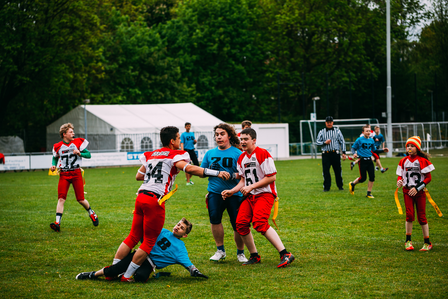 Heute war ich beim Flag Football Spiel der Franken Knights Jugend. Obwohl es „nur“ Flag Football war, ging es manchmal ganz schön zur Sache! 😀