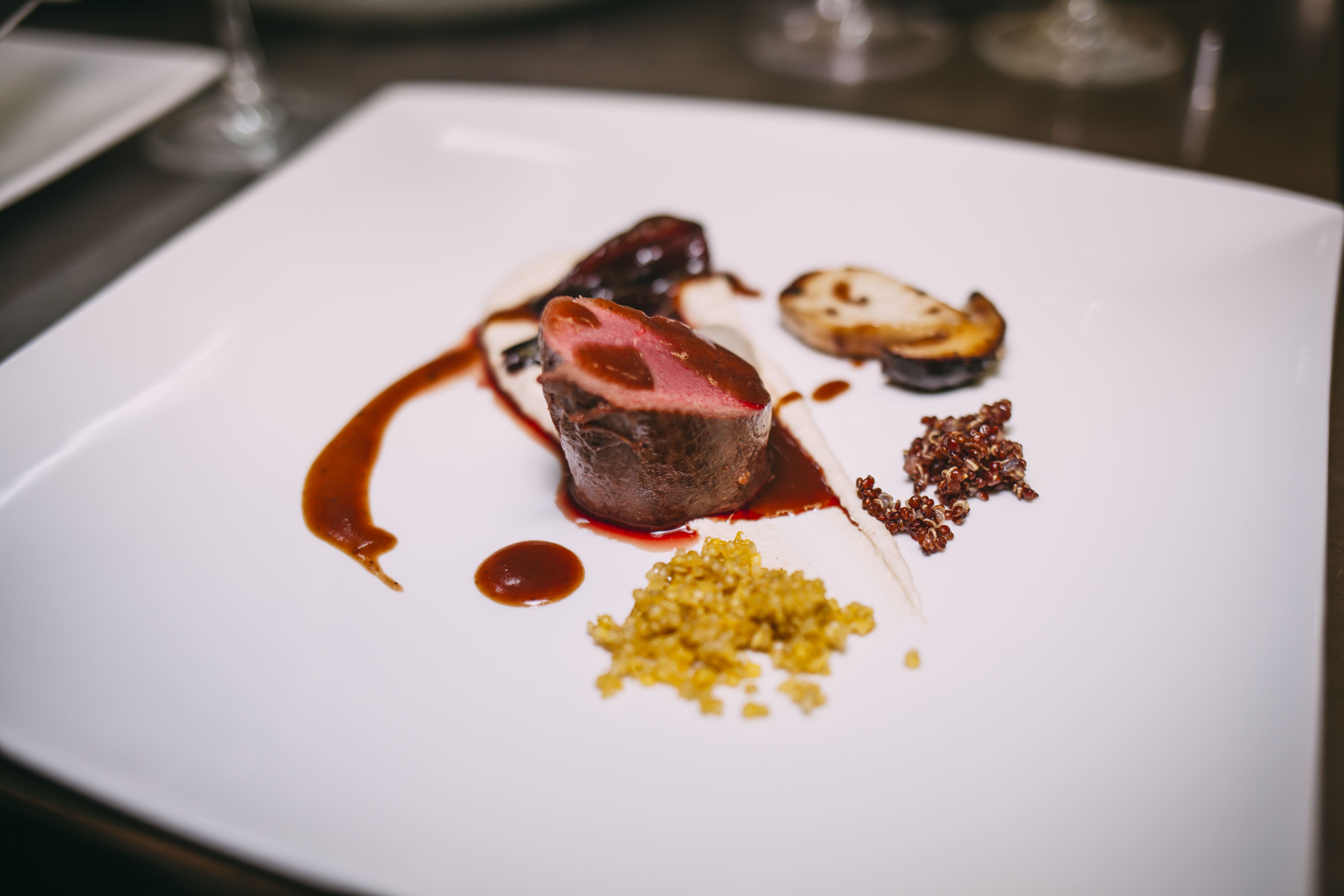 Tag 1: Dieses Bild war auch gleichzeitig der Startschuss für mein Projekt. Wir waren von Flo zu einer Küchenparty auf dem Winzerhof Stahl nach Auernhofen eingeladen. Soweit ich mich erinnere war das Rehfilet mit zweierlei Quinoa, Steinpilz und Balsamico-Schalotte.