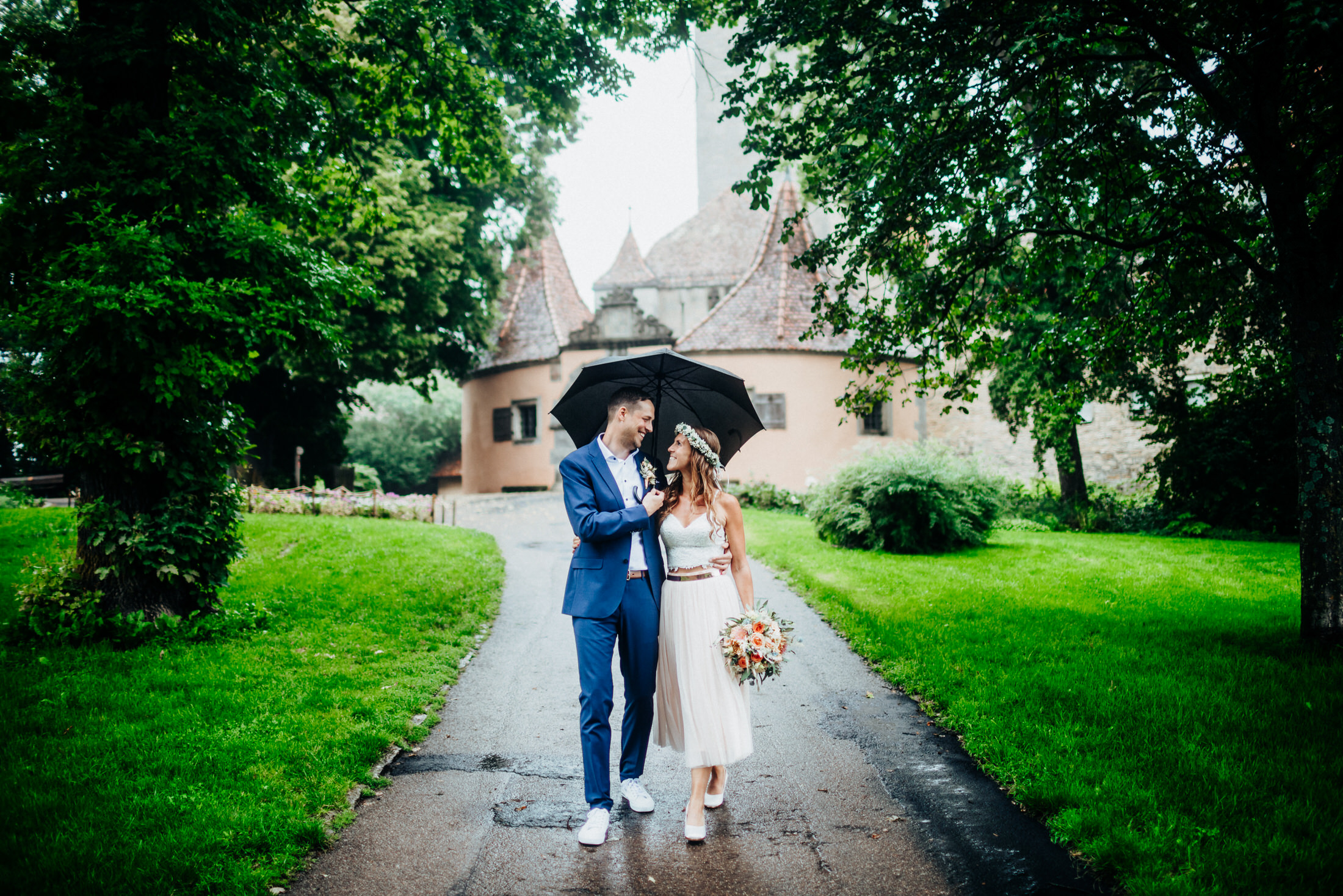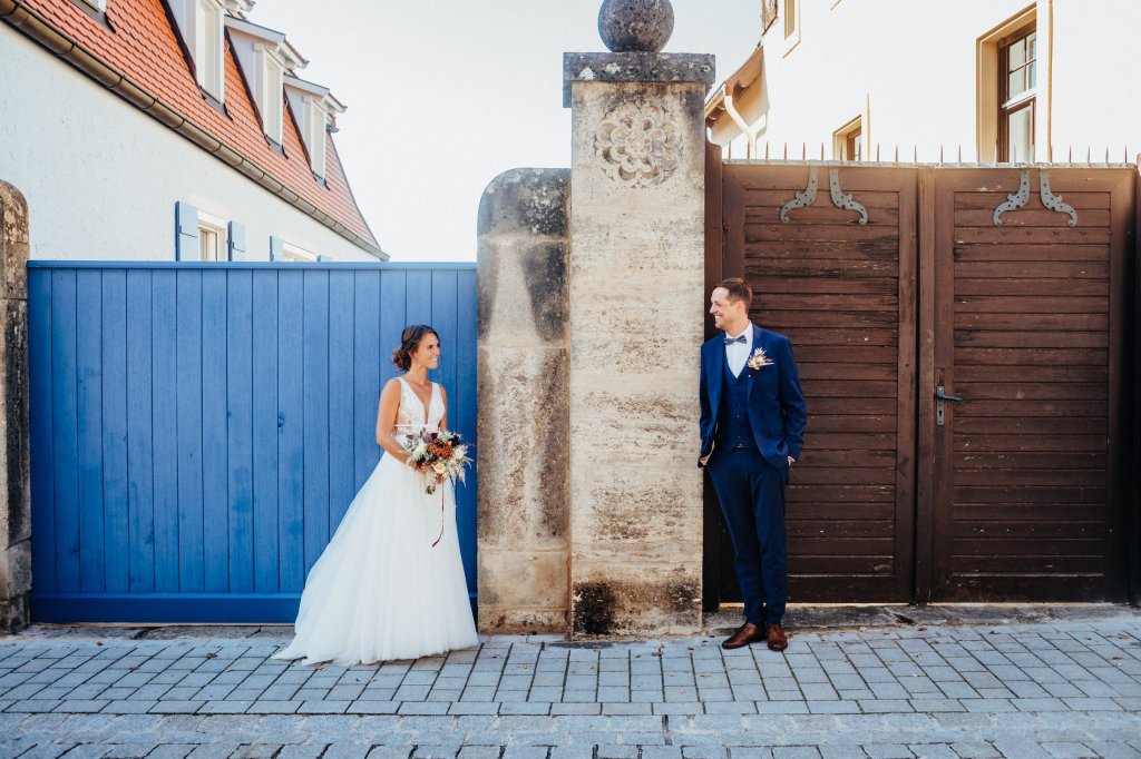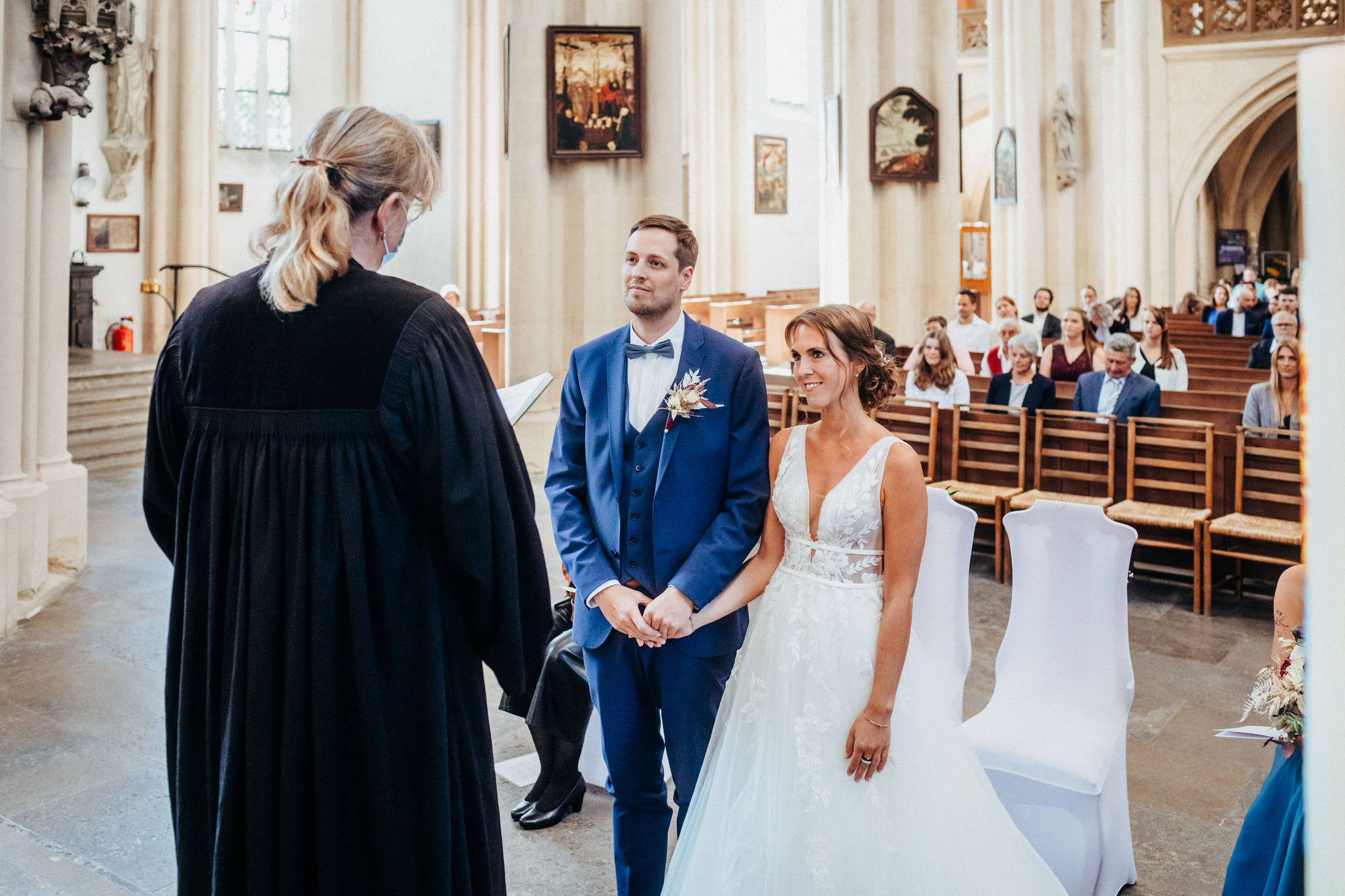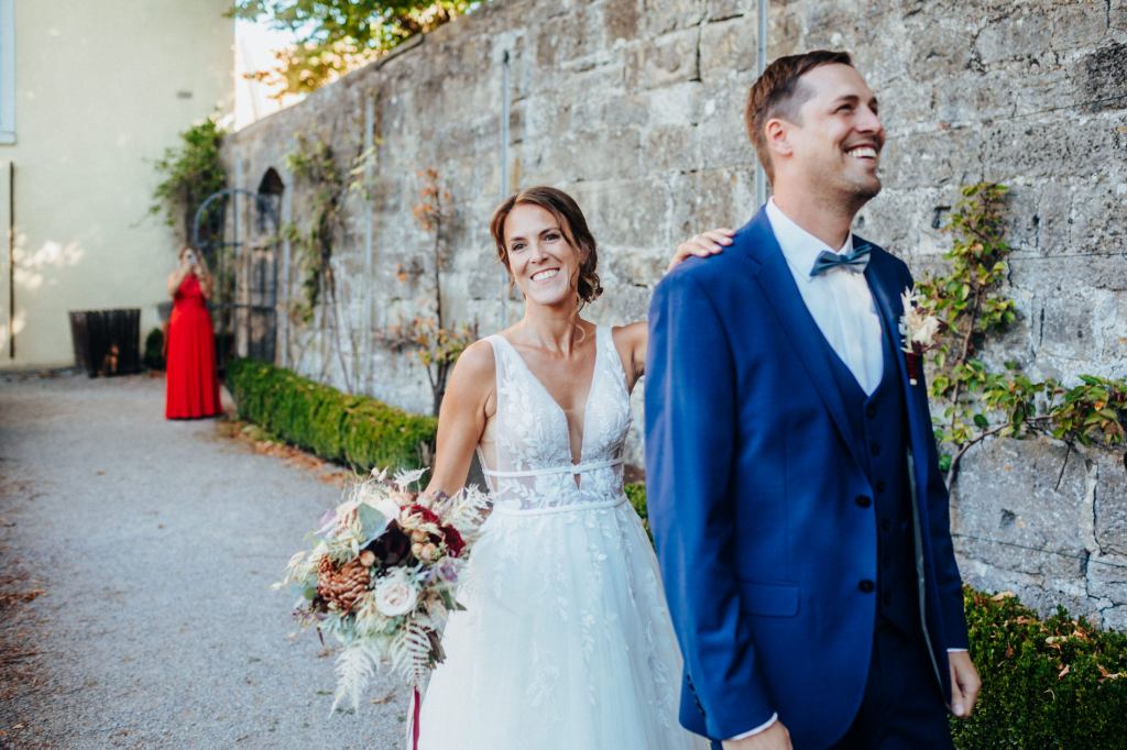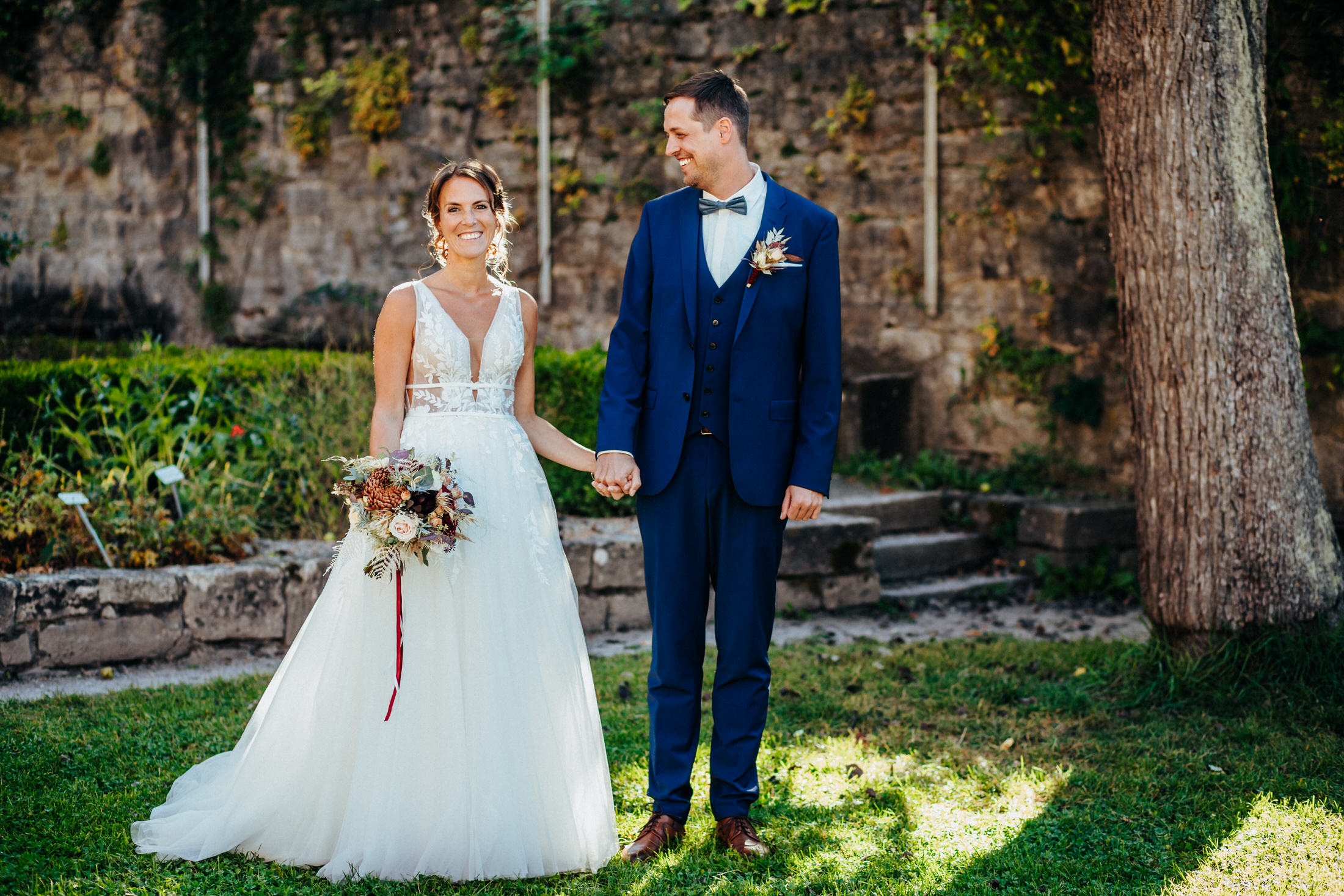 Im September hatten wir dann mehr Glück mit dem Wetter. Bei strahlendem Sonnenschein trafen wir uns zum First Look im Klostergarten. Nach der Trauung in der Jakobskirche ging es weiter nach Tauberzell zum Landhaus zum Falken.