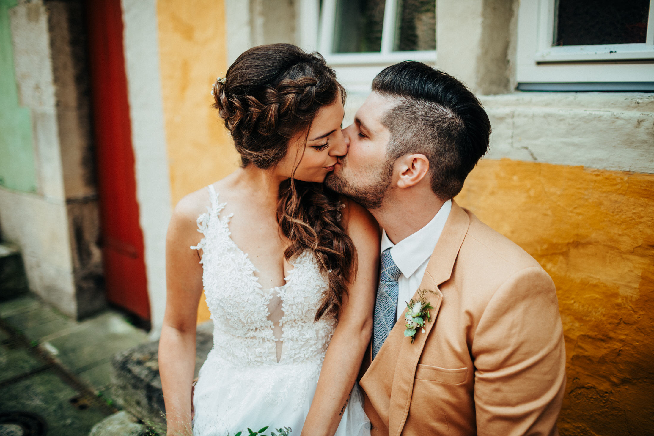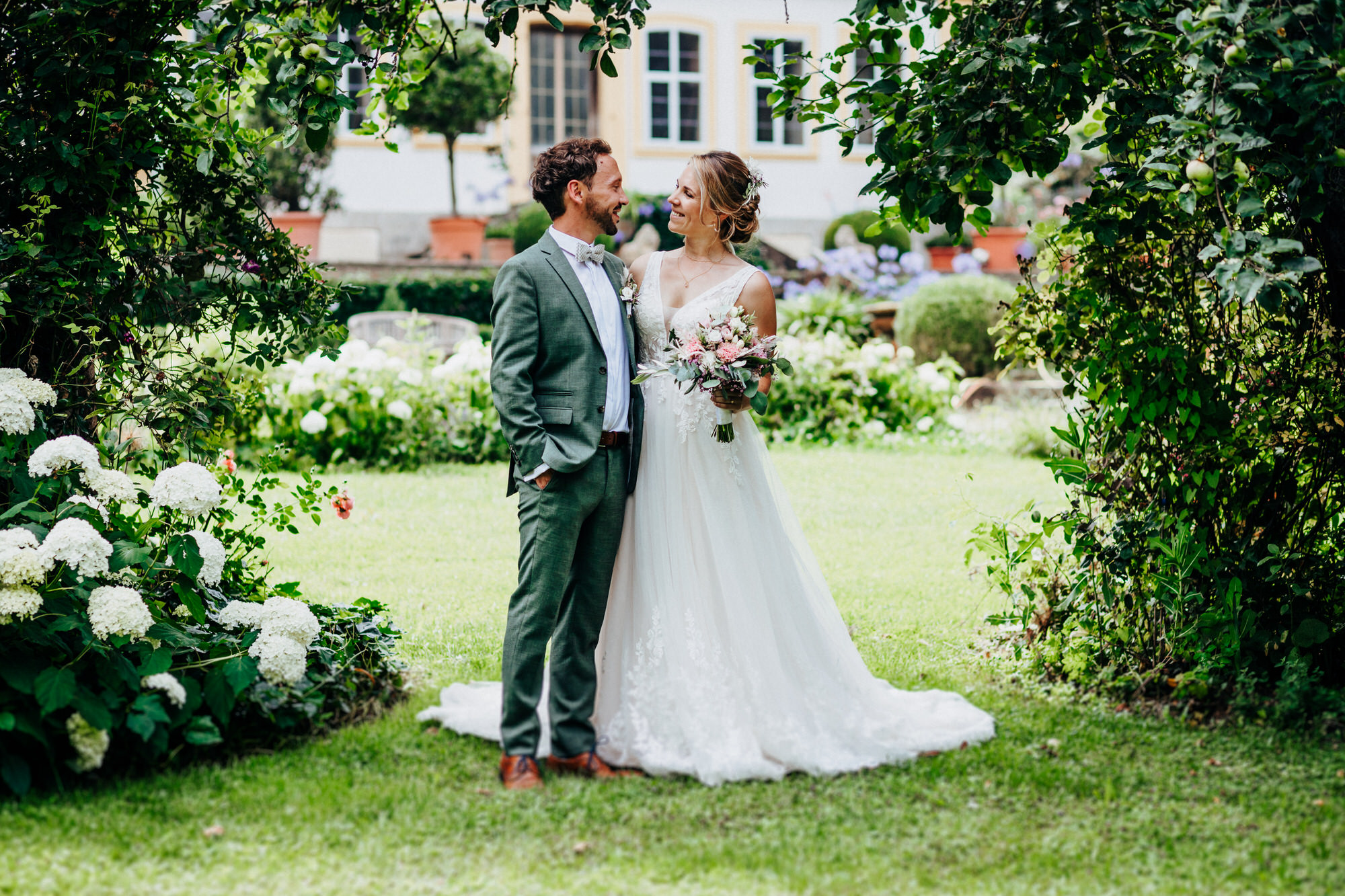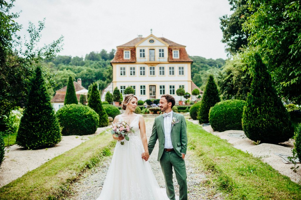 Heute beginne ich mit der Hochzeit von Vroni & Dome. Hier war es ein noch größeres Vergnügen, die beiden zu begleiten, weil wir seit vielen Jahren befreundet sind. Vroni & Dome heirateten Ende Juli in der Heilig-Geist-Kirche in Rothenburg. Zum Paarshooting waren wir dann (dank guter Beziehungen von Vroni) auf Gut Hohbach und konnten die Bilder in toller Kulisse machen. Die anschließende Feier fand im Landhaus zum Falken statt – und was war das bitte für eine Feier! 🙂
