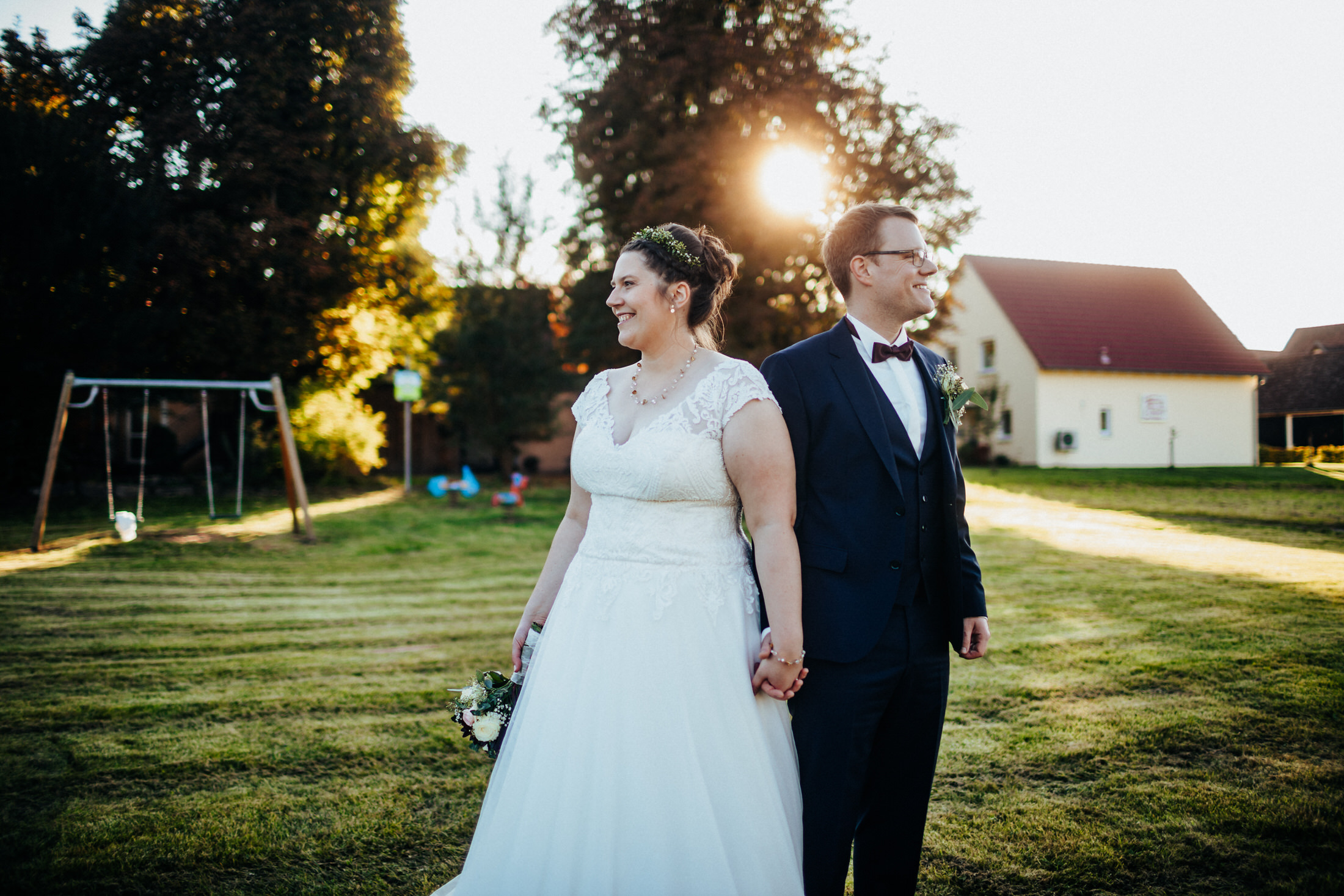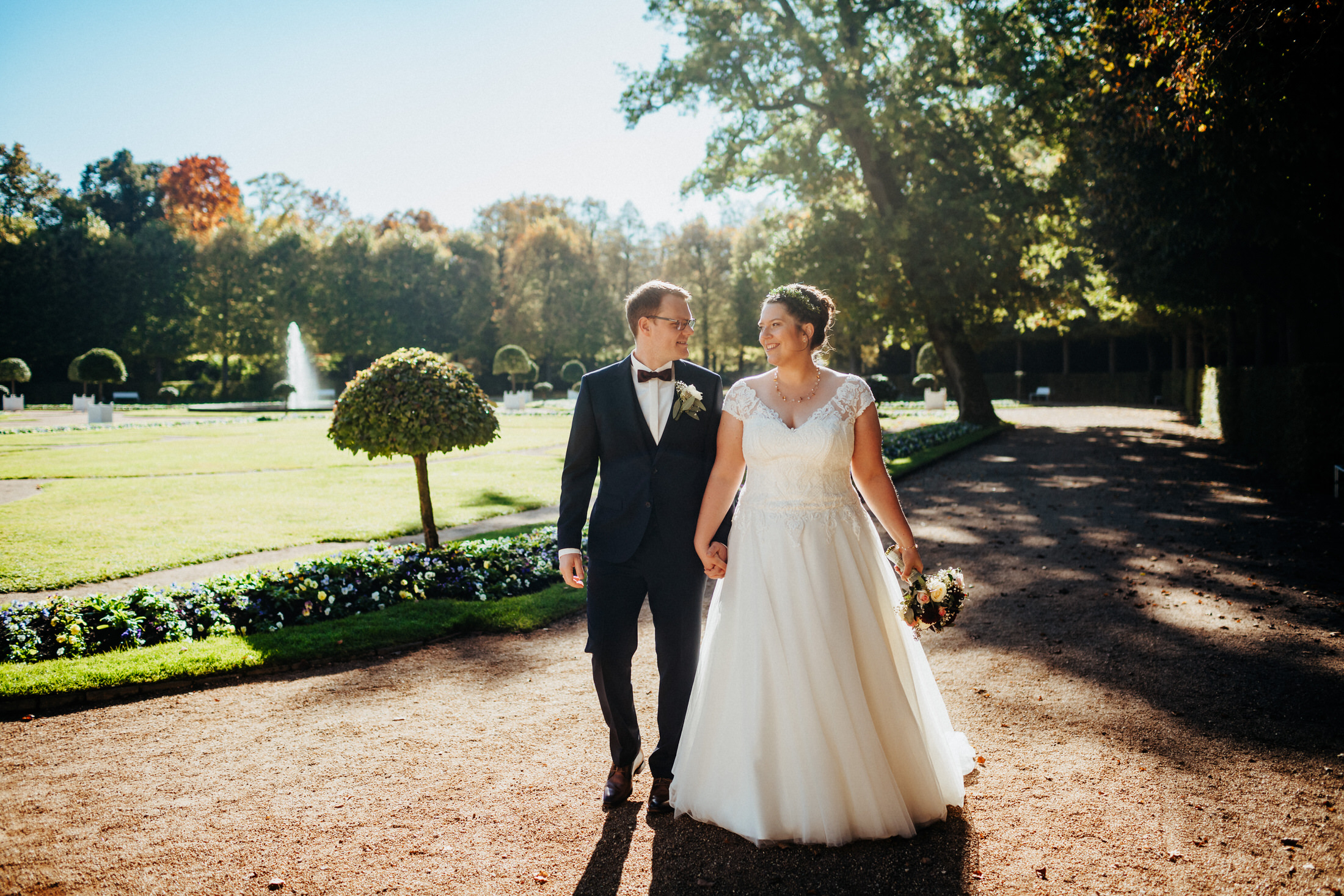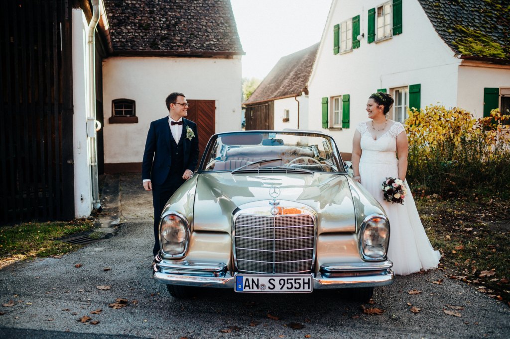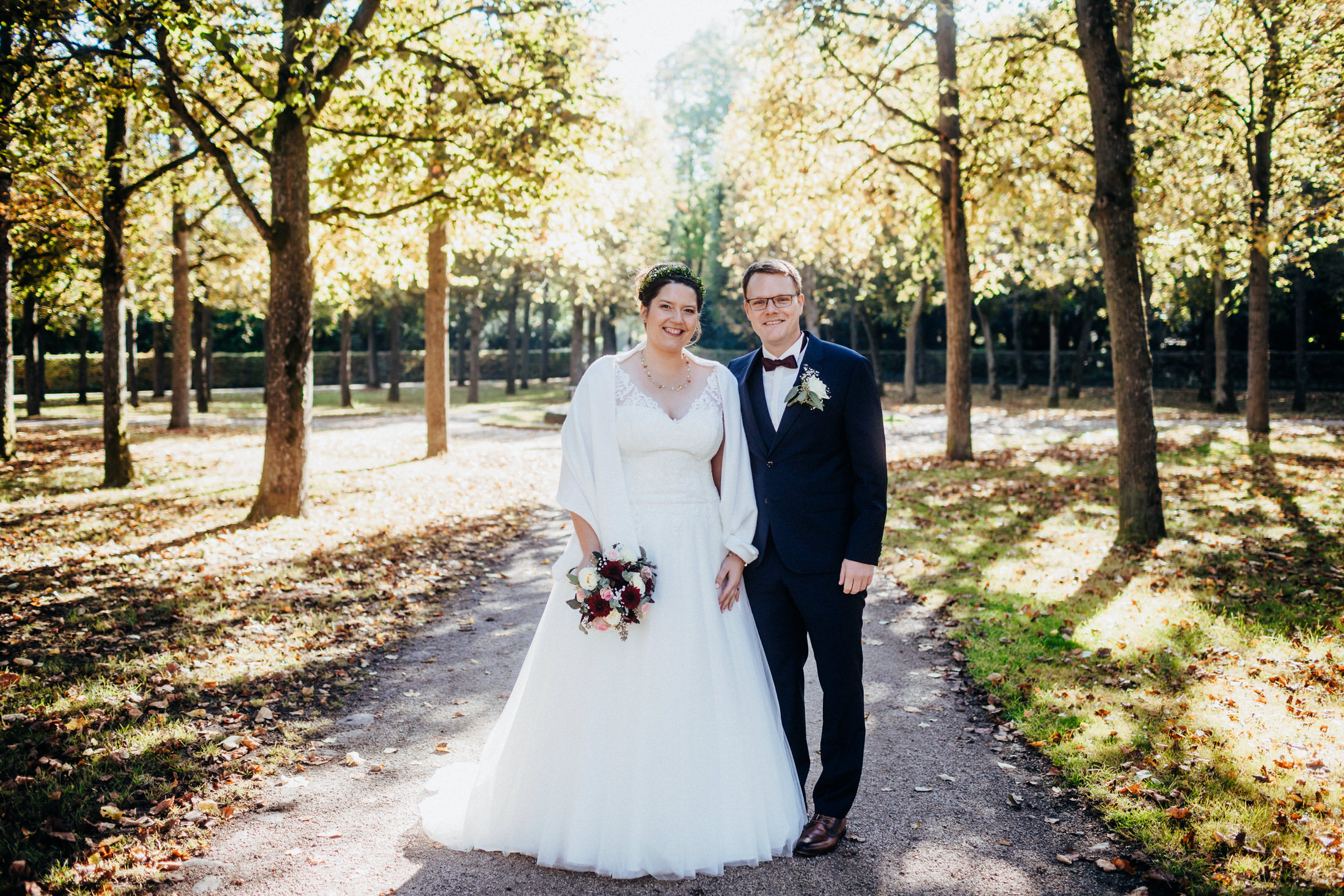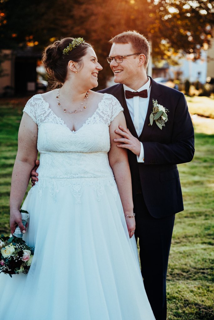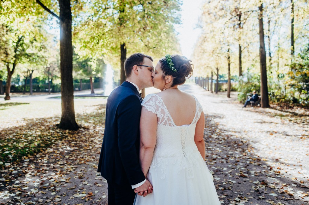 Ebenfalls im Oktober trauten sich Mira & Tobi. Für ihr Paarshooting vereinbarten wir einen First Look im Schlossgarten von Ansbach. Die beiden suchten sich dafür den perfekten Tag aus, weil die Sonne mit den beiden um die Wette strahlte. Anschließend ging es dann weiter in die St. Ludwig-Kirche für die Trauung. Nach dem Sektempfang und Kaffee & Kuchen im Pfarrzentrum fand die Feier dann im Landgasthof Schwarzes Ross in Wasserzell statt. Ein rundherum perfekter Tag!