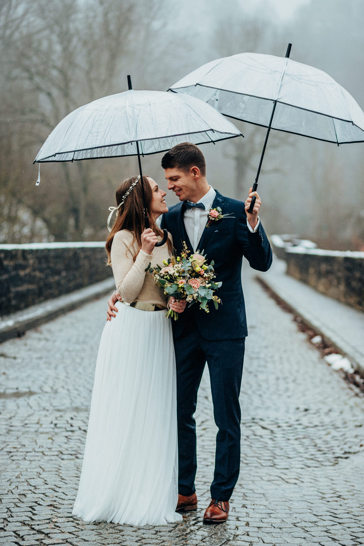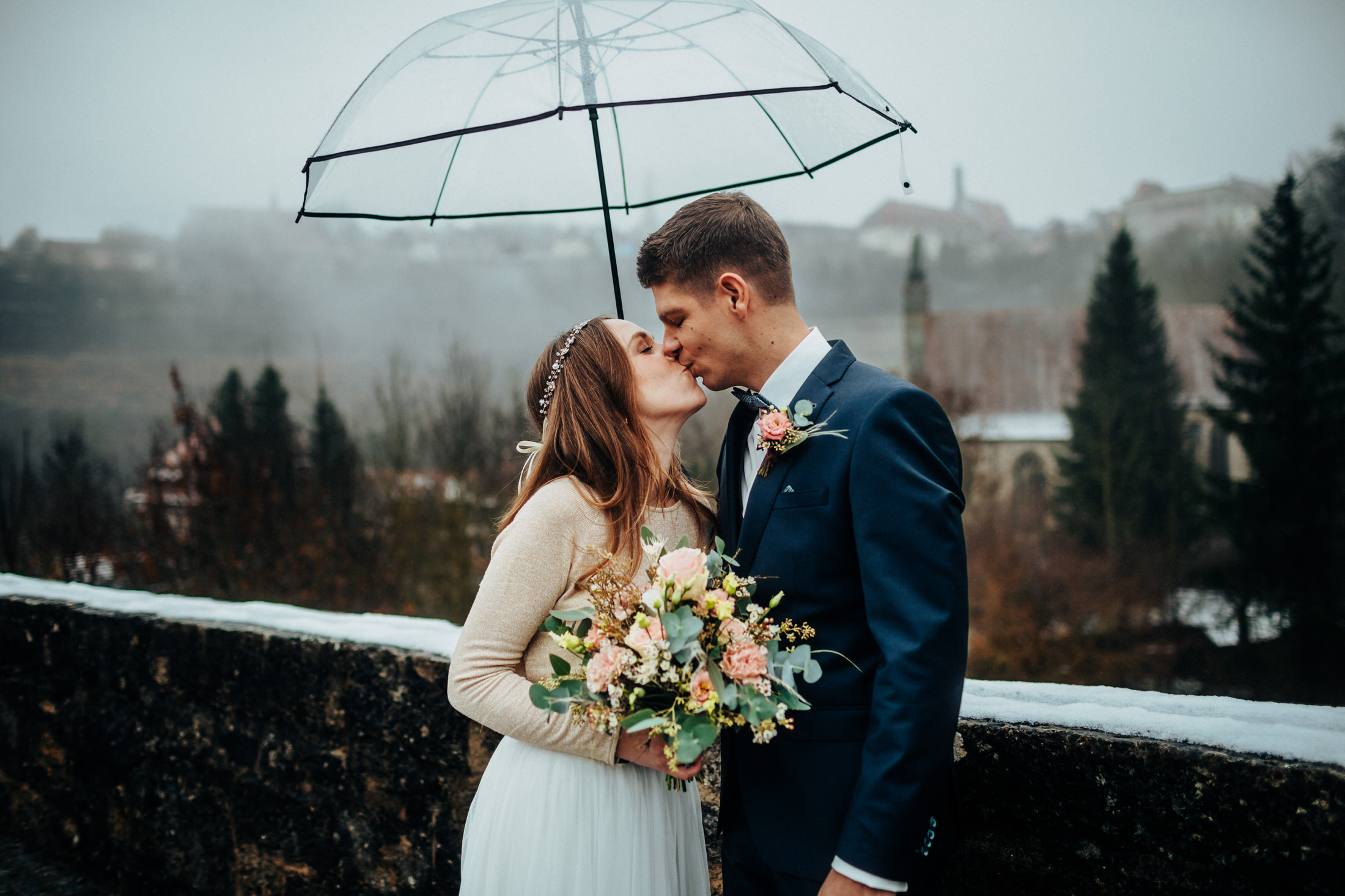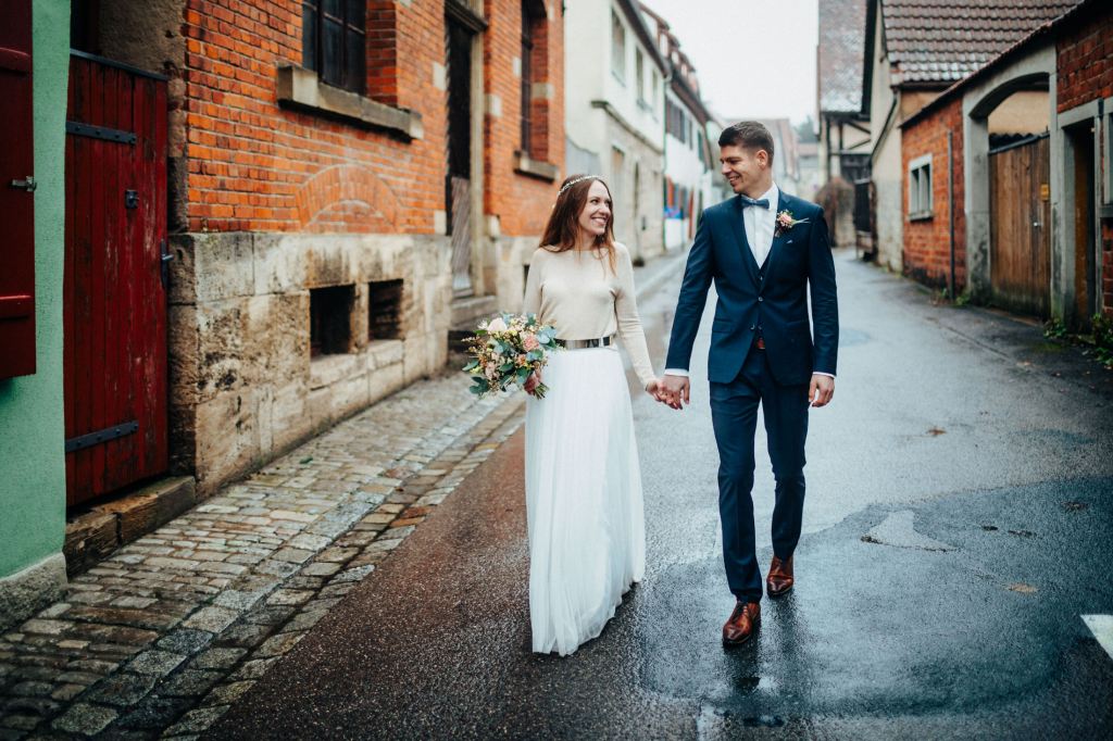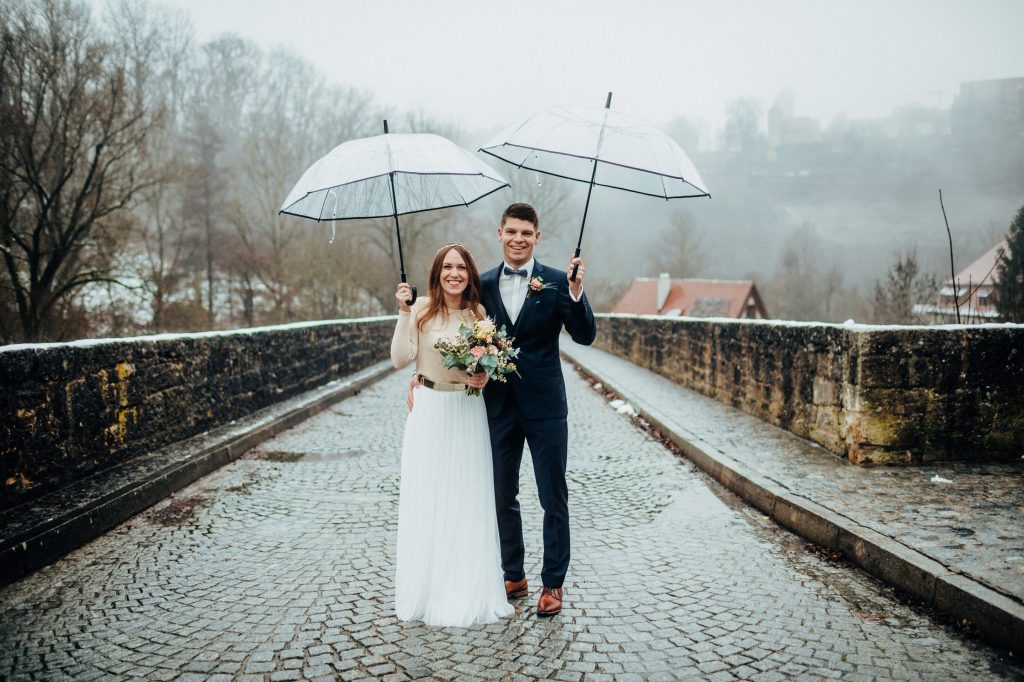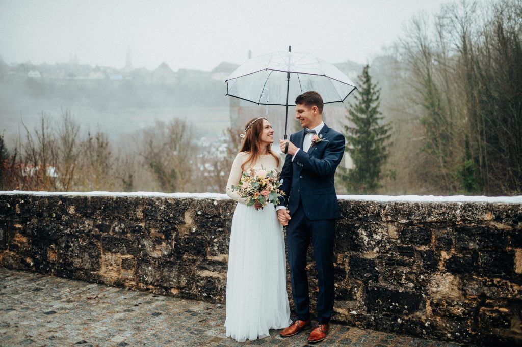 Die letzte Hochzeit in diesem Jahr war eine standesamtliche Hochzeit im Dezember. Mit Laura & Tobi traf ich mich im Taubertal unterhalb von Rothenburg. Leider spielte das Wetter so gar nicht mit, die beiden waren aber mit Regenschirmen ausgestattet und wir konnten immer mal wieder kleinere Regenpausen für das Paarshooting nutzen. Auch in der Altstadt machten wir so noch ein paar schöne Bilder, bevor es dann zur Trauung nach Lohr weiter ging. Nach der Trauung warteten dann bereits viele Gratulanten zum Spalier stehen, bevor Abends dann ausgelassen gefeiert wurde. Die beiden sehen übrigens nicht nur gut aus, sie machen auch ganz tolle Öle! 🙂
