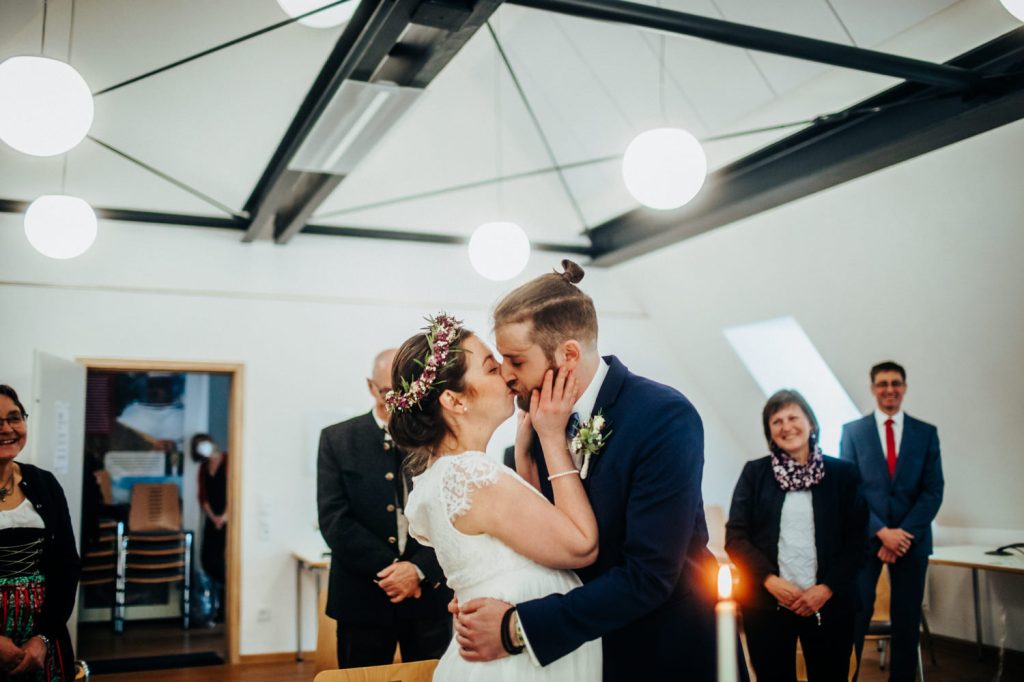 Die standesamtliche Trauung fand dann in Gebsattel statt, nach der kirchlichen Segnung ging es dann nach draußen wo noch viele Spaliersteher in eisigen Temperaturen ausharrten, um den beiden zu gratulieren.