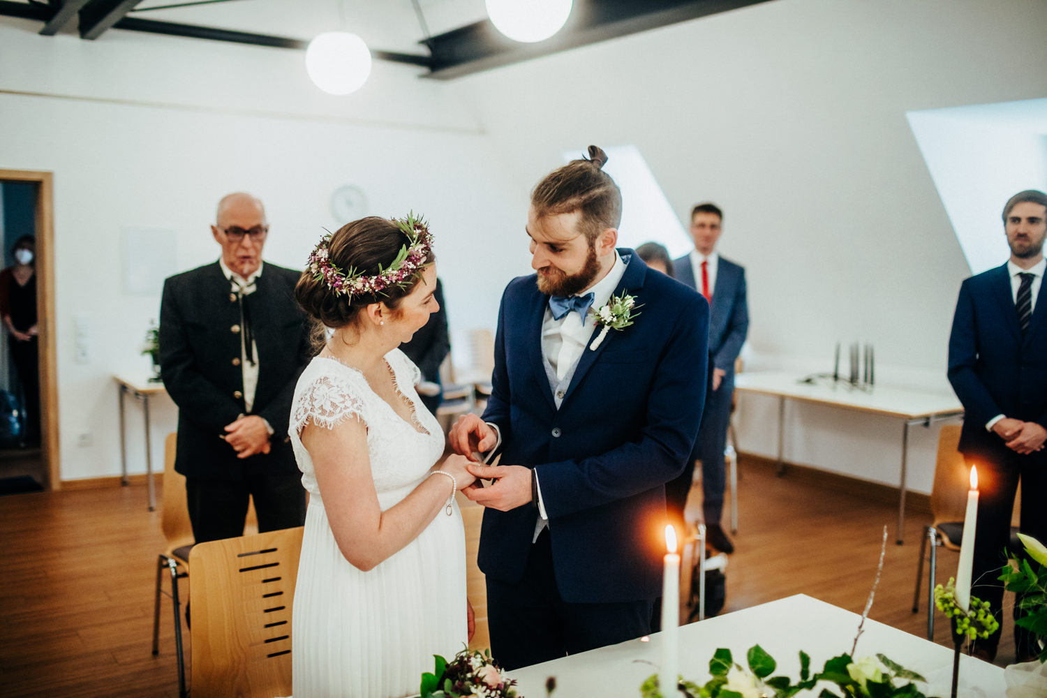 Die standesamtliche Trauung fand dann in Gebsattel statt, nach der kirchlichen Segnung ging es dann nach draußen wo noch viele Spaliersteher in eisigen Temperaturen ausharrten, um den beiden zu gratulieren.