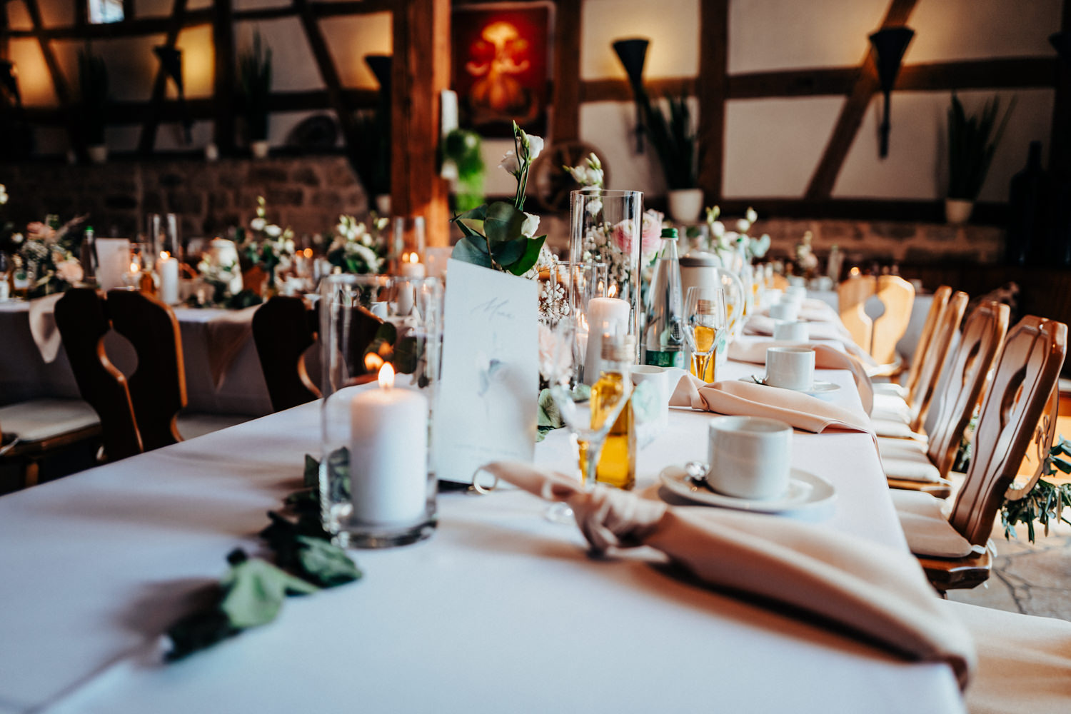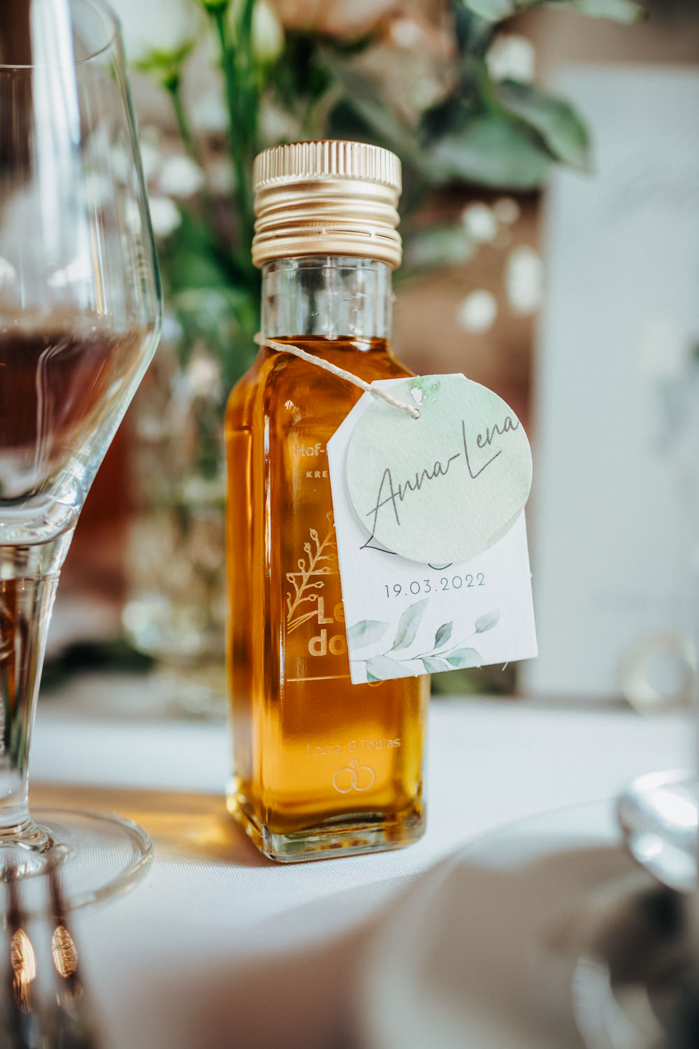 Nach der Kirche, vielen Spalierstehern und einem Sektempfang ging es dann weiter nach Tauberzell zum Landhaus zum Falken. Alles war traumhaft dekoriert für diesen perfekten Tag. Alle Gäste erhielten als Gastgeschenk die tollen Öle, die die Familie selbst herstellt.