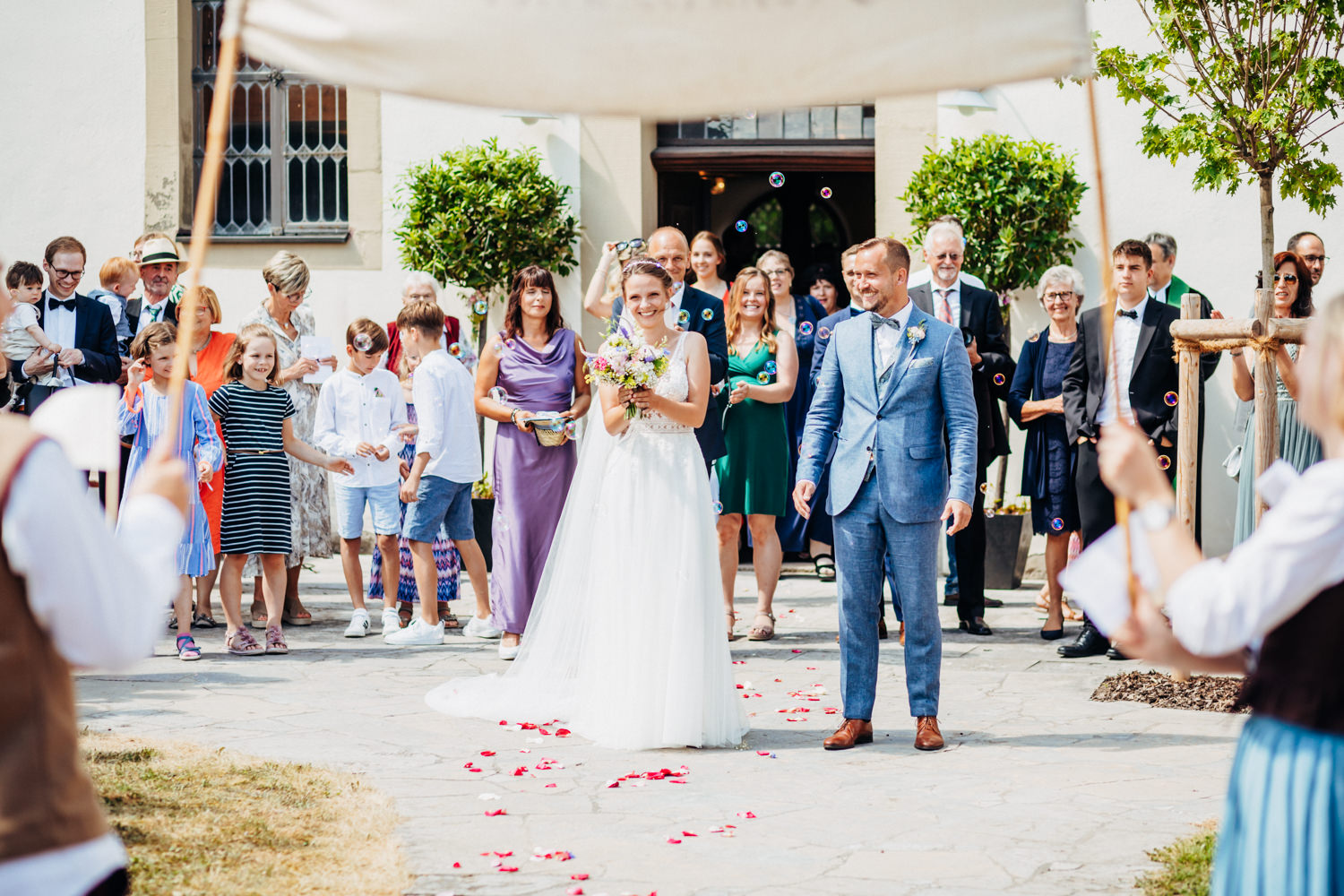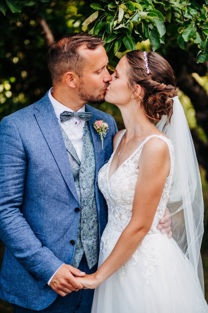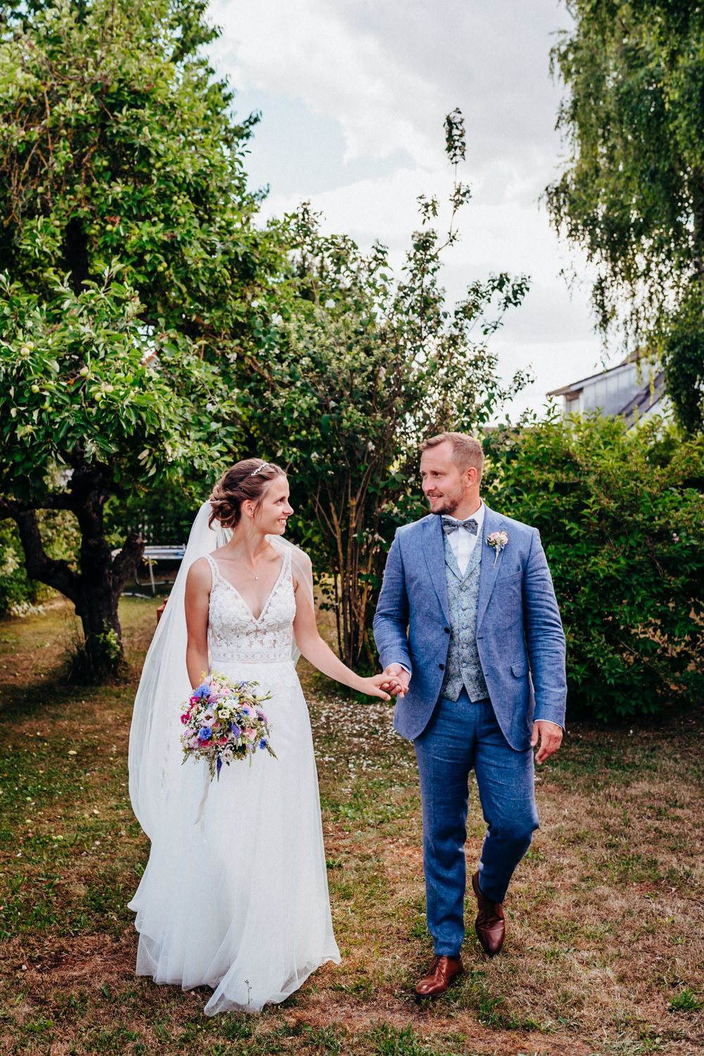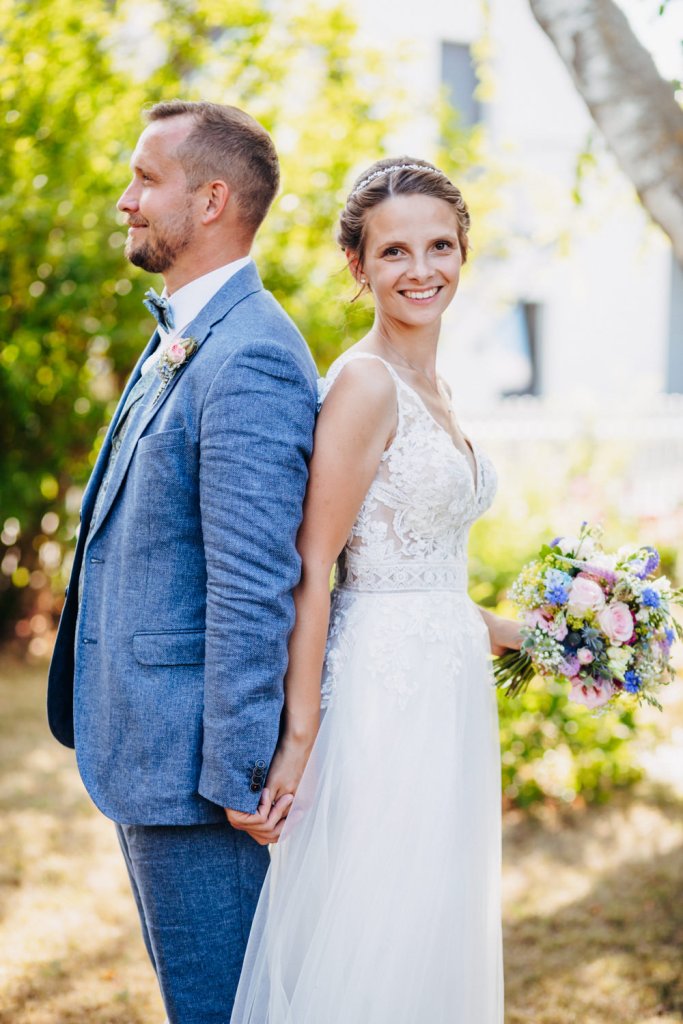 Im Anschluss ging es zu Fuß weiter zur Location. Hier war bereits alles vorbereitet und es folgten musikalischen Einlagen des Losen Haufens und des Ziach-Duos. Das Paarshooting fand dann im Garten der beiden statt.