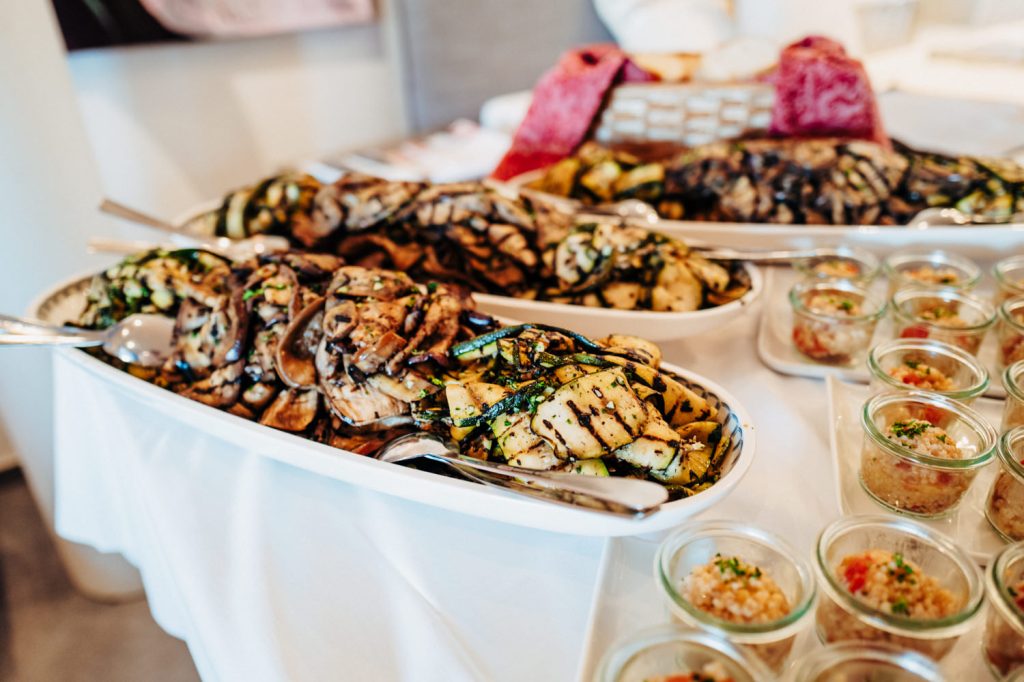 Im dekorierten Baumgarten genossen die Gäste dann die tolle Musik und guten Getränke, nach zahlreichen Gruppenbildern ging des dann dem Abendessen entgegen. Hierfür hatten Jana & Michi und ihre zahlreichen Helfer mehrere Zelte auf dem Hof aufgebaut. Die Italia in Rothenburg sorgte für ein köstliches italienisches Antipasti-Buffet, bei dem keine Wünsche offen blieben und danach ging es mit den warmen Speisen, tollen Weinen und dem Nachtisch weiter.