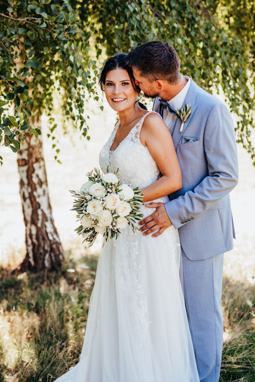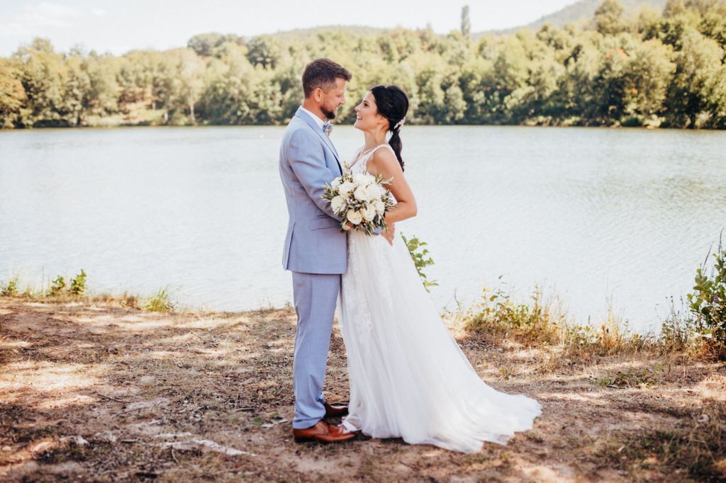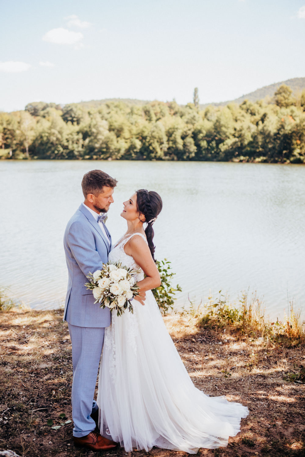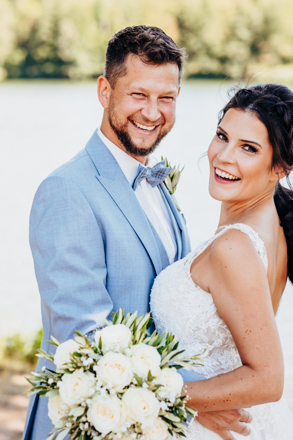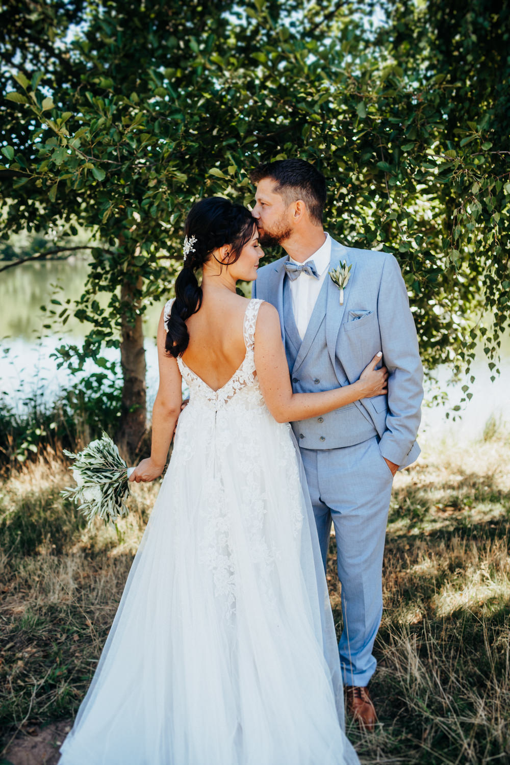Um möglichst viel Zeit für die Gäste zu haben, planten wir das Paarshooting vor der kirchlichen Trauung. Hierfür trafen wir uns am wunderschön gelegenen See in Freudenberg am Main.