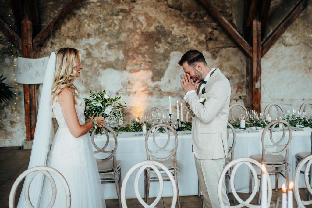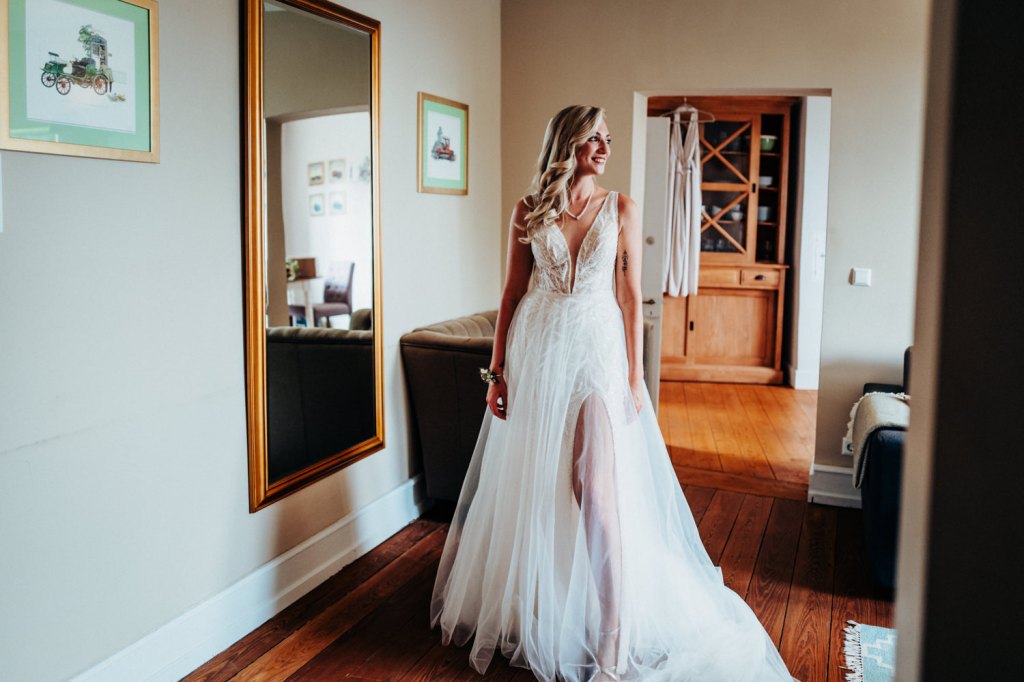 Danach folgte der First Look in der wunderschön dekorierten Orangerie des Schlosses. Es ist immer wieder schön, bei diesem besonderen Moment dabei zu sein, wenn der Bräutigam die Braut das erste Mal sieht und in so einem Ambiente war der Augenblick nochmal spezieller.