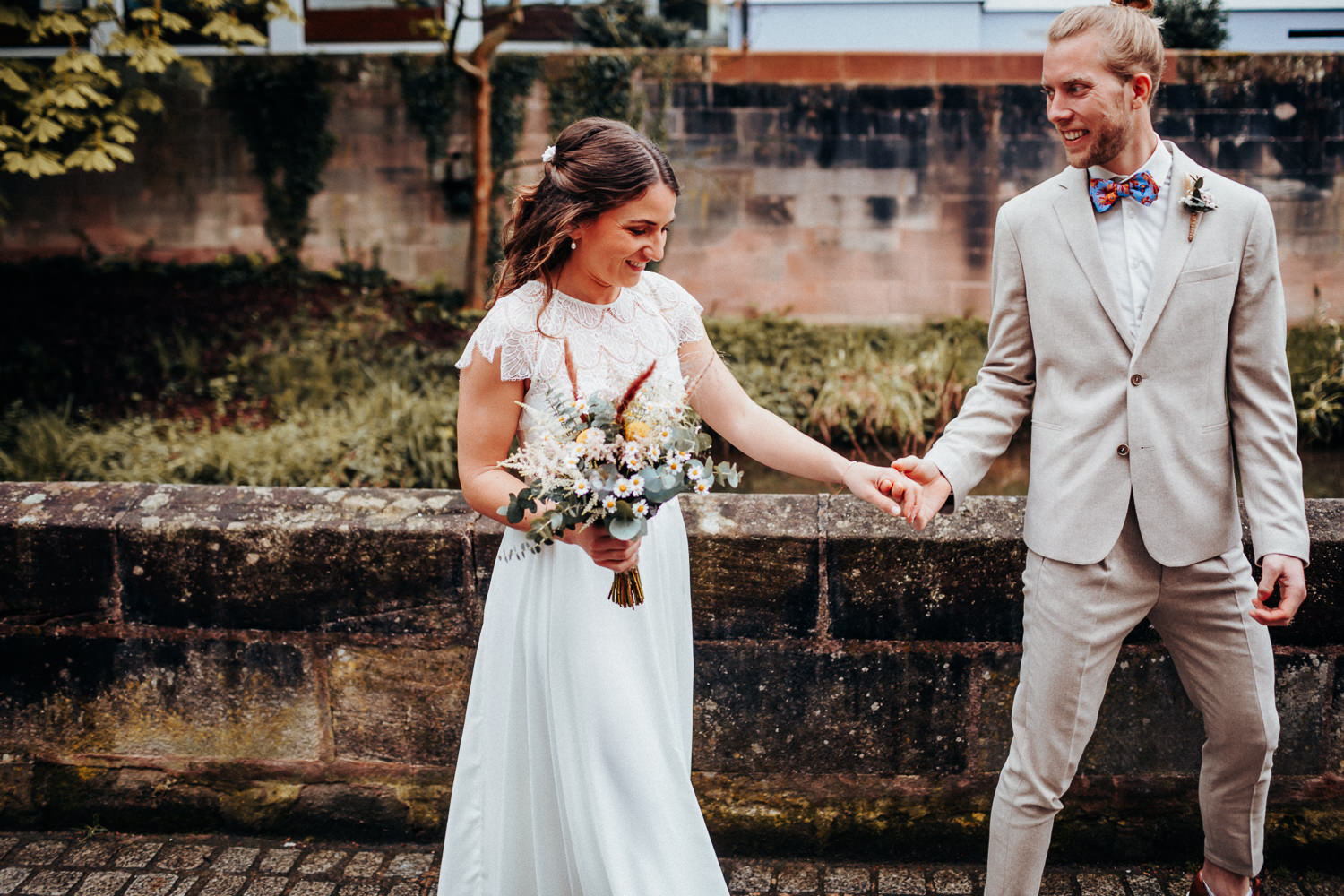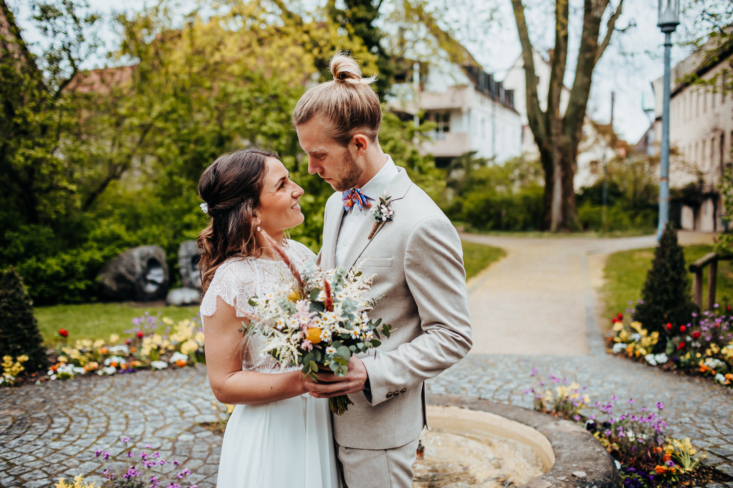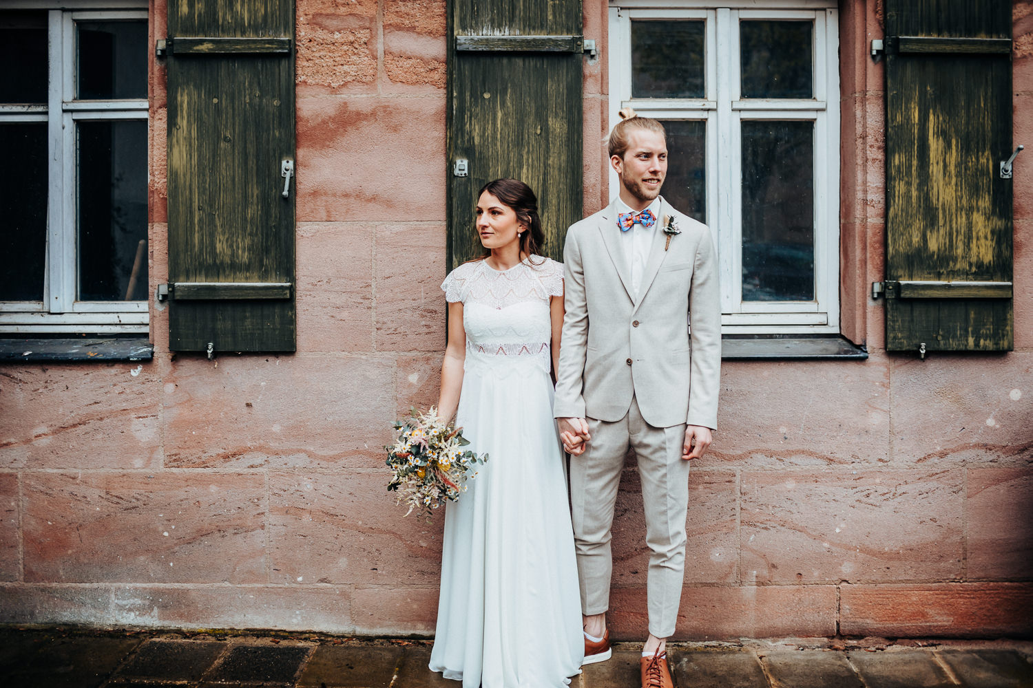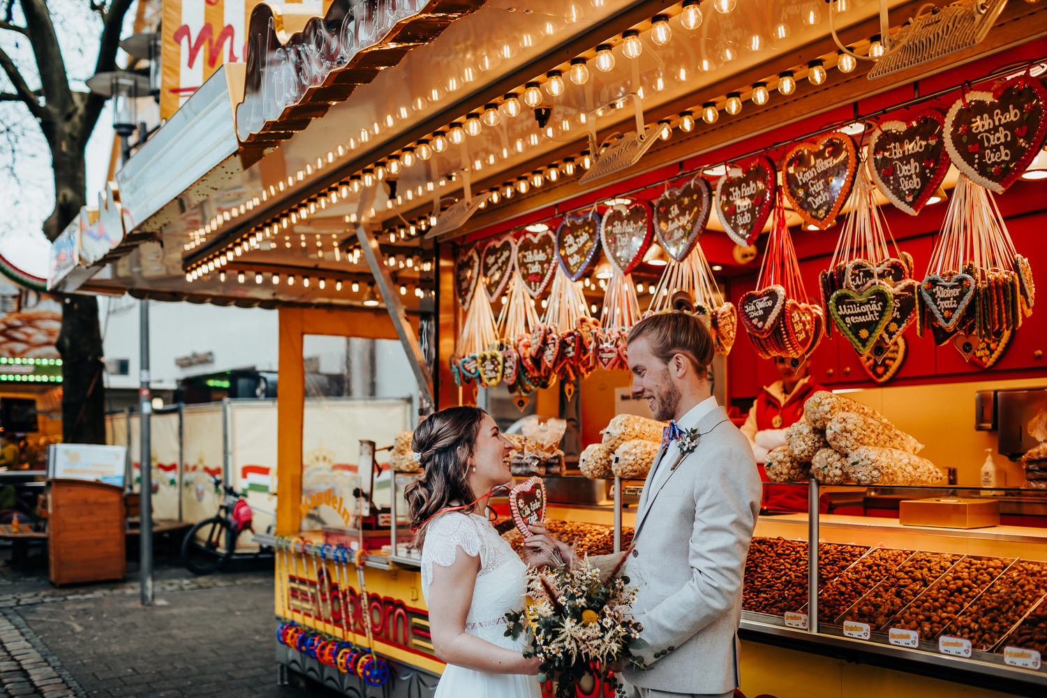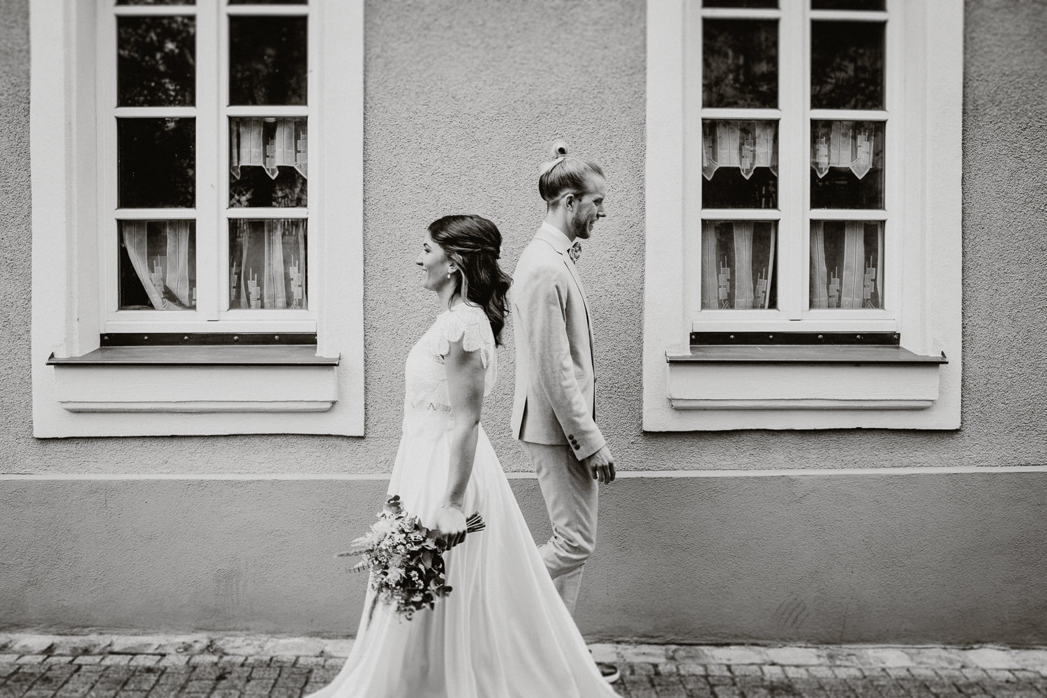 Der Tag begann mit einem kleinen Fotoshooting in der bezaubernden Altstadt von Schwabach. Die engen Gassen und tollen Fachwerkhäuser bildeten eine zauberhafte Kulisse für die Aufnahmen. Aber es war nicht nur die Altstadt, die an diesem Tag ihre Tore öffnete – es war auch das Volksfest, das die Straßen mit fröhlichem Treiben füllte. Stephi und Jojo nutzten diese Atmosphäre für ein paar besondere Fotos.