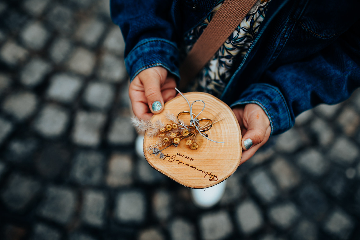 Nach dem Fotoshooting machte sich die gesamte Gesellschaft auf den Weg zum Bürgerhaus II in Schwabach, wo die standesamtliche Trauung stattfand. Das historische Gebäude strahlte einen ganz eigenen Charme aus und bot den perfekten Rahmen für den offiziellen Teil der Hochzeit. Unter den liebevoll dekorierten Bögen und dem sanften Licht des Saals gaben sich Stephi und Jojo das Ja-Wort.