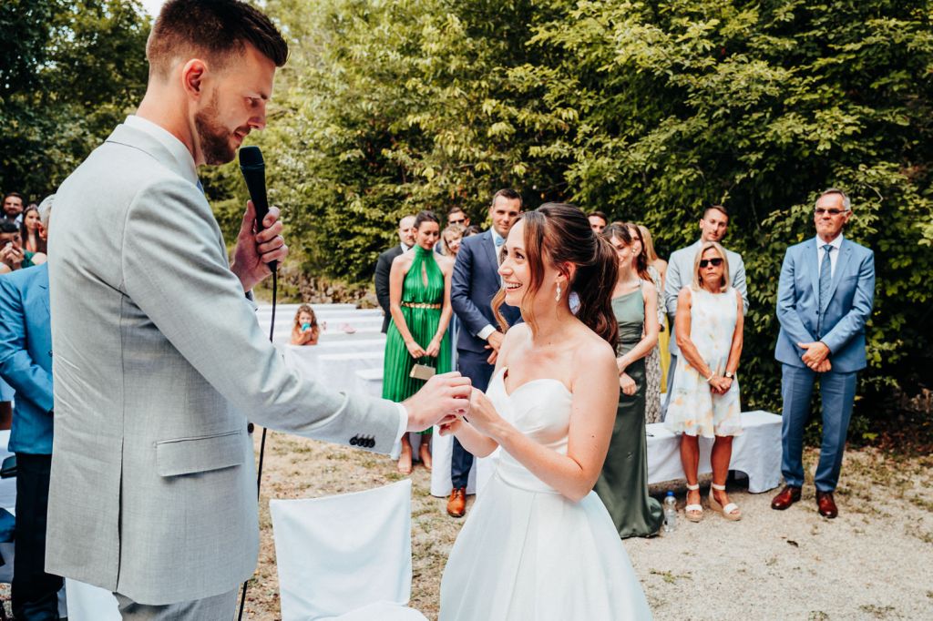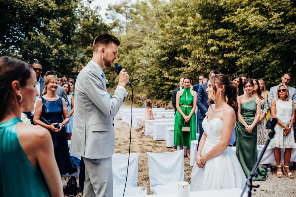 Die emotionale Trauung fand inmitten der schönen Weinberge von Tauberzell statt. Familie und Freunde versammelten sich, um das Paar bei ihrem bedeutsamen Schritt in die Zukunft zu unterstützen. Die persönlichen Gelübde und herzlichen Worte, die sich Vicky und Daniel schworen, berührten nicht nur die Gäste (😉) und schufen eine Atmosphäre von tiefer Liebe und Verbundenheit.