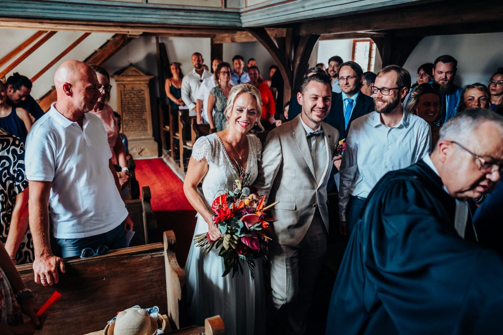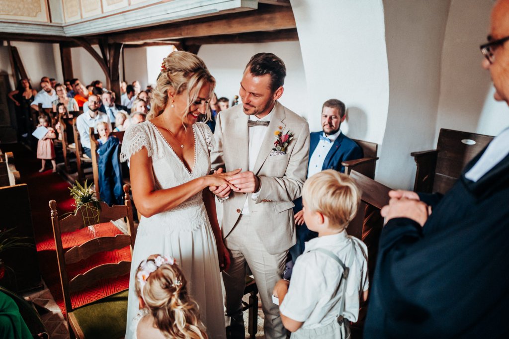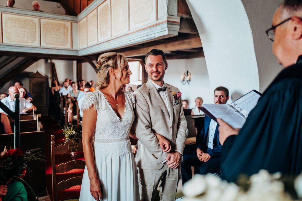 Die Trauung fand in der bezaubernden kleinen Kirche von Reichelshofen statt. Die herzliche Atmosphäre, die humorvollen Worte des Pfarrers und die tiefen Emotionen, die in der Luft lagen, machten diesen Moment wirklich besonders.