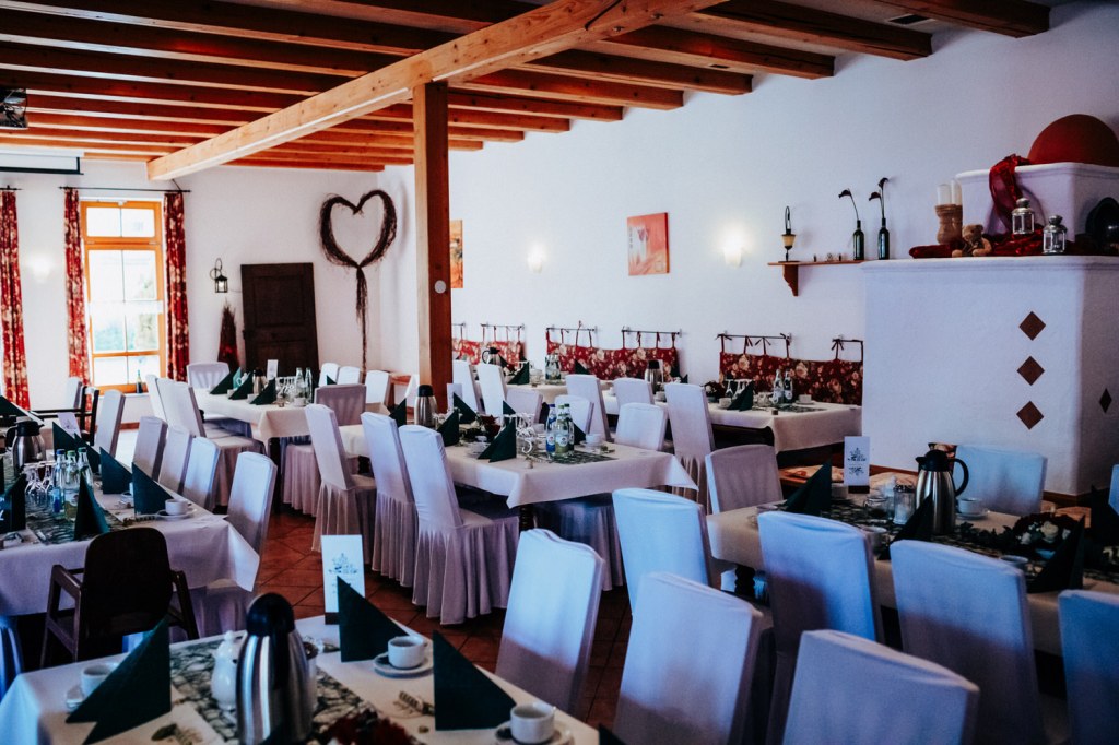 Die anschließende Feier fand schließlich im Roten Ross in Ohrenbach statt, wo die festliche Hochzeitsfeier in vollem Gange war. Der Saal war liebevoll von den beiden dekoriert worden und die vielen Details spiegelten die Persönlichkeit des Paares wider.