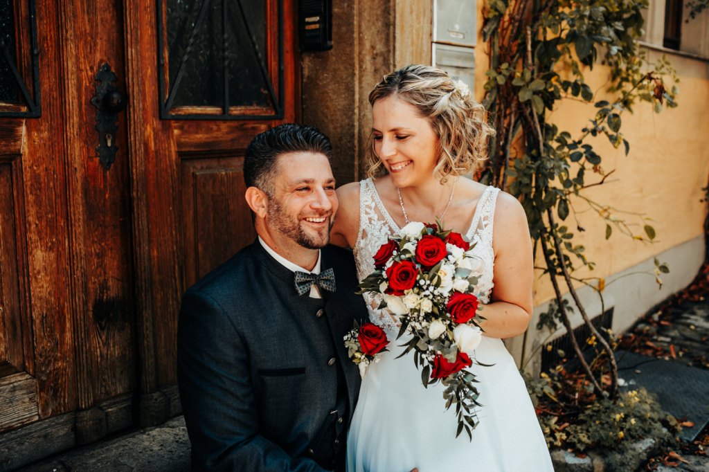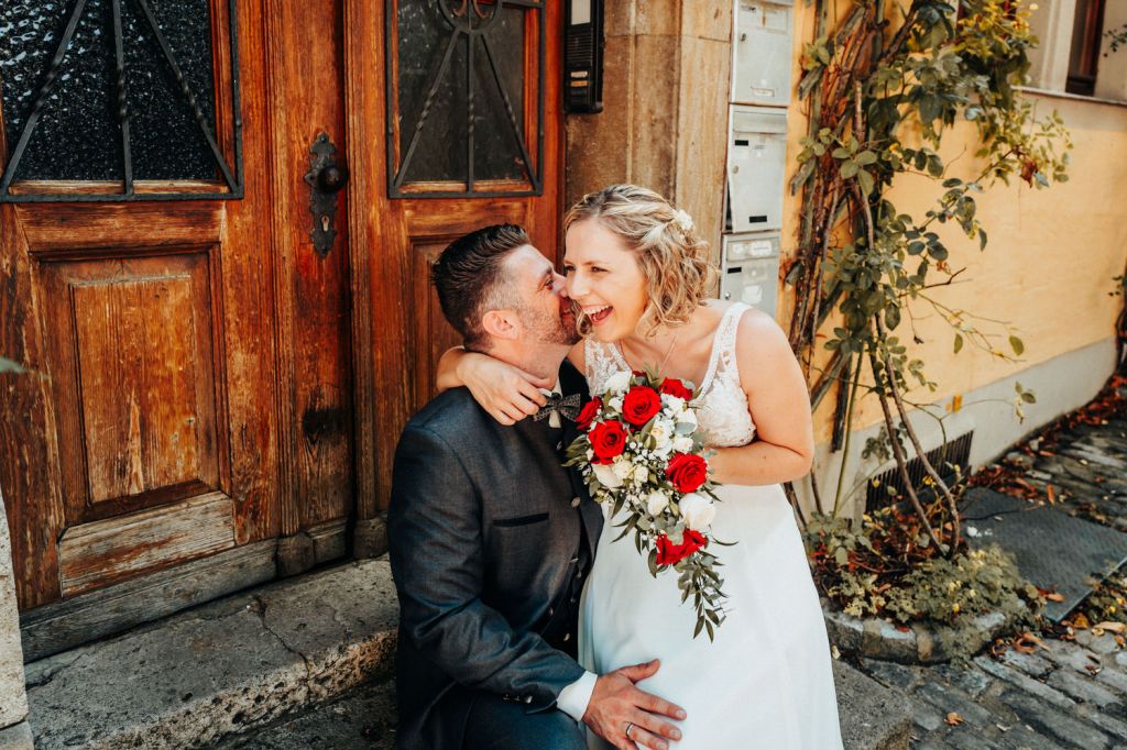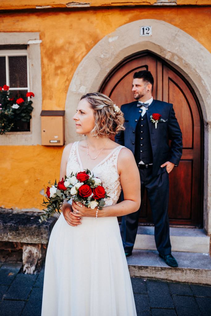 Nach dem Standesamt ging es bei tollem Wetter raus in die Altstadt für ein entspanntes Paarshooting. Die malerischen Gassen von Rothenburg und das tolle Wetter boten die perfekte Kulisse für romantische Aufnahmen.